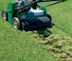 Вычесывание газонной травы - это необходимая профилактика появления грибковых заболеваний, которая также улучшает циркуляцию воды и воздуха в прикорневой зоне. Производится это процедура веерными садовыми граблями, удаляя остатки скошенной травы, старые сухие стебли, мох и разного рода органические накопления, образовавшиеся в осенне-зимний период. Для больших площадей покрытия, где работа граблями довольно трудоемка, используют специализированные машины для вычесывания газона.