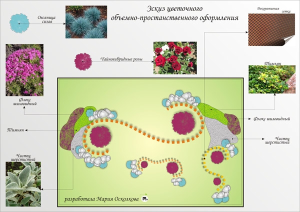 Начинается проектирование с эскизных вариантов, на которых указываются существующие постройки, а также все элементы благоустройства и озеленения в границах проектируемого участка. Далее наносится планировочное решение ландшафтной организации территории в целом. Для большей наглядности могут быть использованы фотографии, 3D-модули конструкций, растений или отдельных видовых точек. Эскизы выполняются в свободном масштабном формате, однако учитывают планируемую стилистику объекта (регулярную, пейзажную или смешанную) и обеспечивают гармоничное сочетание объекта с ландшафтной средой. К выбранному эскизу прикладывается ассортиментная ведомость используемых растений с указанием ориентировчного количества, но без качественных характеристик.