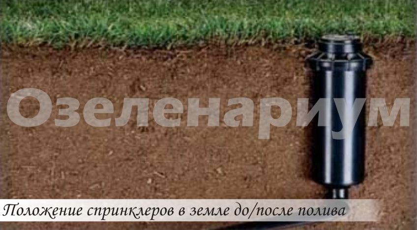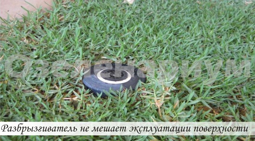 Визуальное восприятие автополива не будет мешать глазу, т.к. сами разбрызгиватели находятся в земле, а при поливе поднимаются на высоту 10 - 30 см, что в свою очередь обеспечивает свободный ход газонокосилки и не мешает движению в целом.