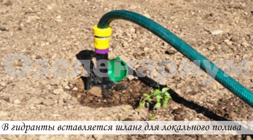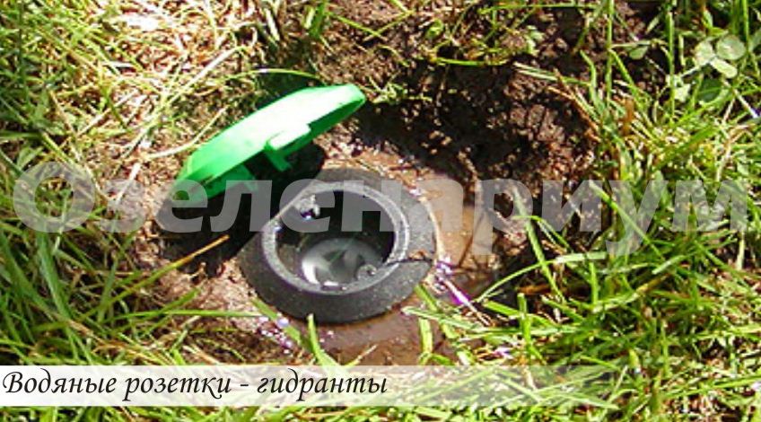 Также на определенных зонах участка могут быть установлены поливочные гидранты (водяные розетки), что обеспечит при необходимости быстро и без особых усилий подключить шланг для локального полива (мойки автомобиля, плитки, фасада здания, окон и т.п.).