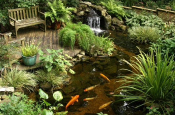 В летнее время рыб подкармливают один раз в день, лучше в дневные часы; своевременно удаляют остатки корма. Мальков рыб отлавливают и временно удаляют из водоема на период доращивания. В жаркую погоду доливают воду в водоем по мере ее испарения. Слишком разросшиеся прибрежные растения прореживают, удаляют отцветшие цветки, не допуская образования засоряющих водоем плодов. Механическим способом (сачком и др.) частично удаляют ряску в случае ее быстрого разрастания. Декоративное болотце регулярно пропалывают, обрезают разросшиеся растения, мульчируют поверхность почвы вокруг растений до наступления жаркого периода. Контролируют развитие вредителей и болезней растений и рыб.